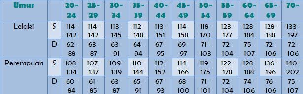 Bacaan Tekanan Darah Tinggi Mengikut Umur
