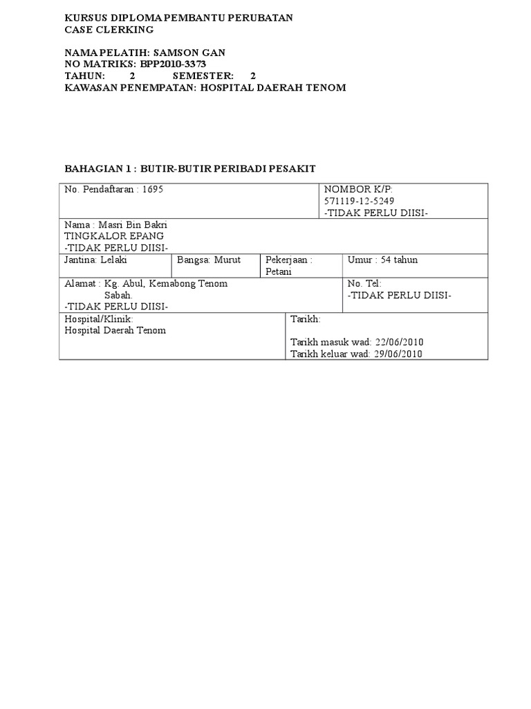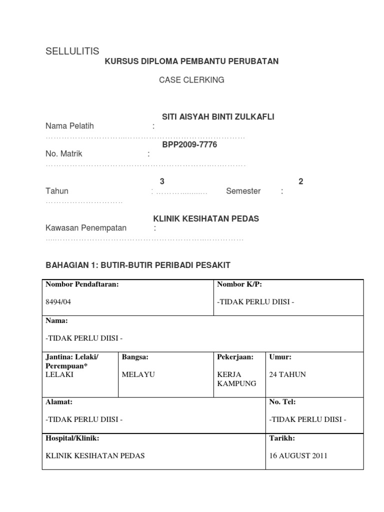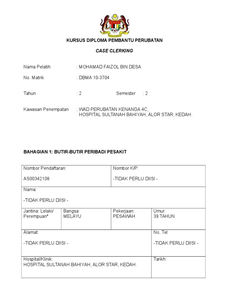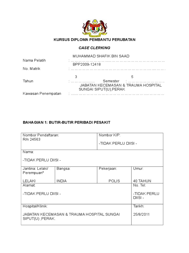Doc Kursus Diploma Pembantu Perubatan Kolej Pembantu Perubatan Alor Setar Kedah Darul Aman Case Clerking Kerja Acab Academia Edu