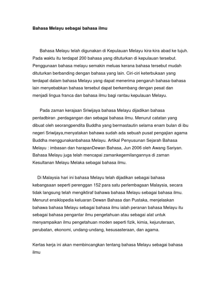 Bahasa Melayu Sebagai Bahasa Ilmu