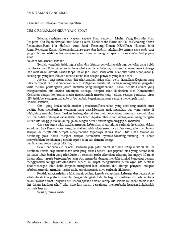 Karangan Gaya Hidup Sihat Satu Amalan Yang Murni