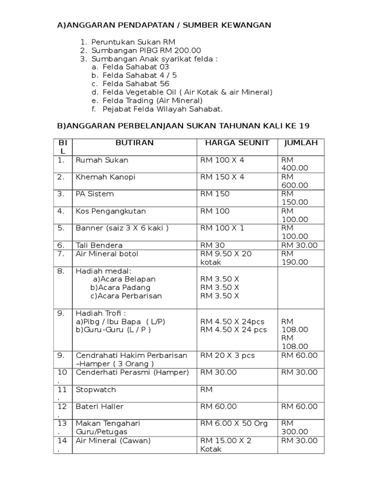 Kertas Cadangan Contoh Anggaran Perbelanjaan Program