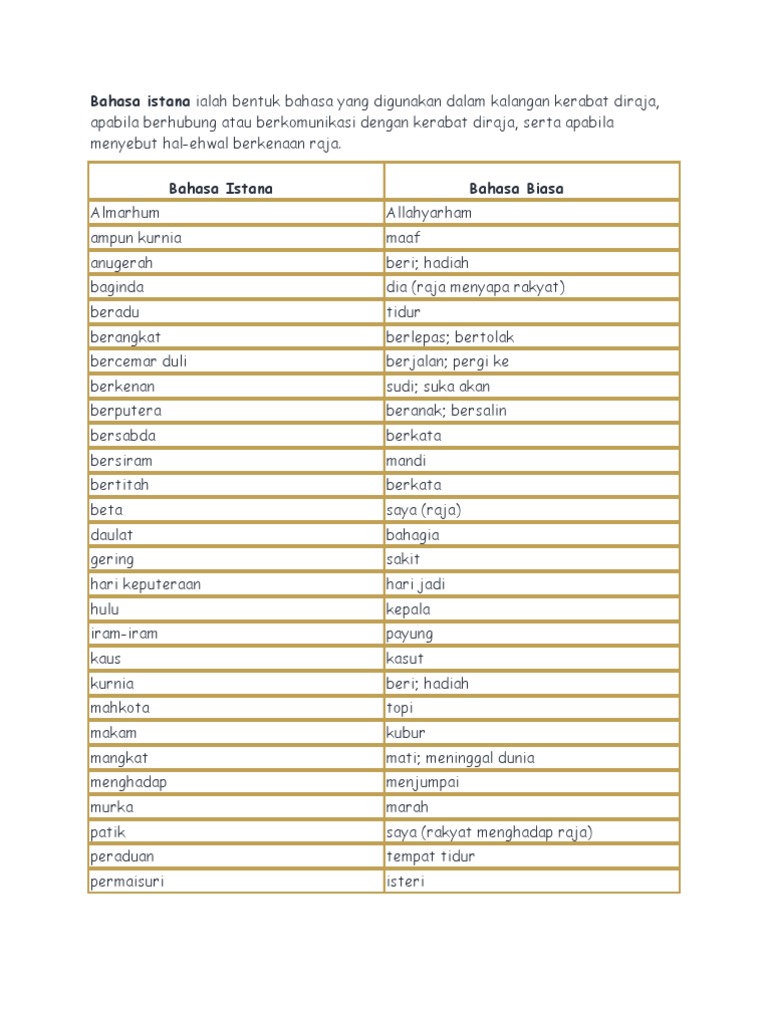Contoh Bahasa Istana Dan Maksudnya