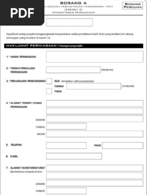 B1 Borang Pendaftaran Perniagaan Borang A Pdf Document
