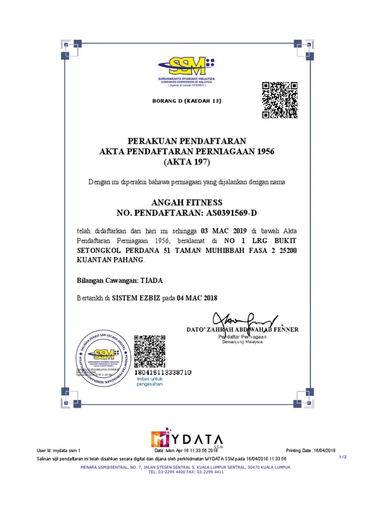 Borang D Sijil Perakuan Pendaftaran Perniagaan