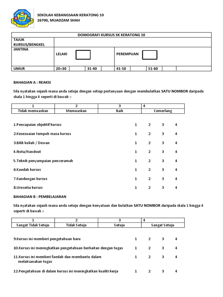 Borang Soal Selidik Kajian Penilaian Keberkesanan Kursus Dalam