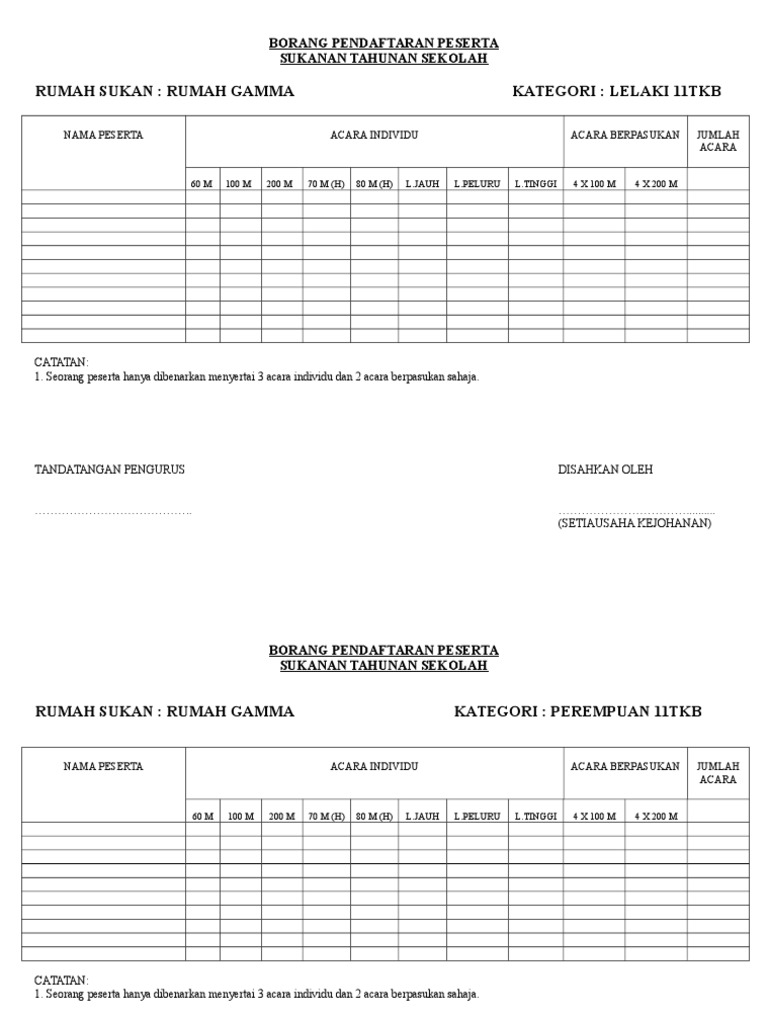 Borang Pendaftaran Peserta Sukan Sekolah Docx