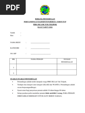 Borang Penyertaan Pertandingan Badminton Docx