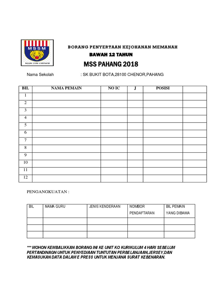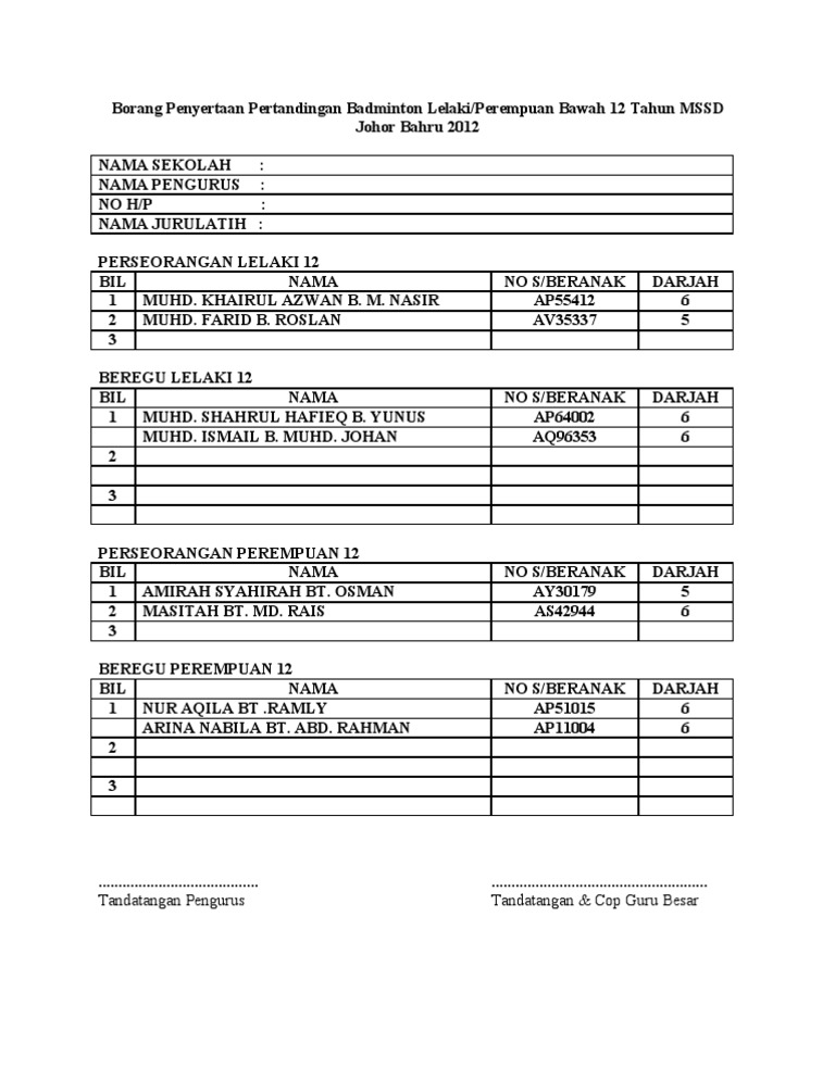 Borang Penyertaan Badminton Docx