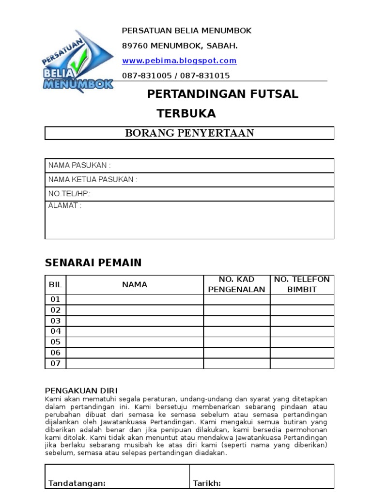 Keptan Jb Borang Penyertaan Pertandingan Bowling Warga Pendidikan Di Bawah Ppdjb