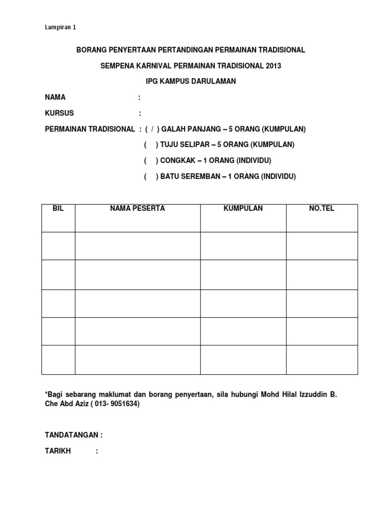 Contoh Borang Penyertaan Pertandingan Menyanyi Sekolah Rendah