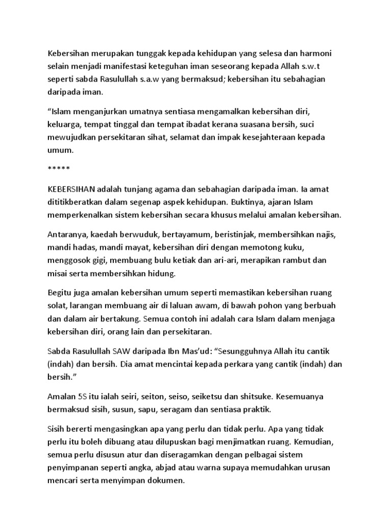 Contoh Karangan Bahasa Arab Kebersihan Separuh Daripada Iman