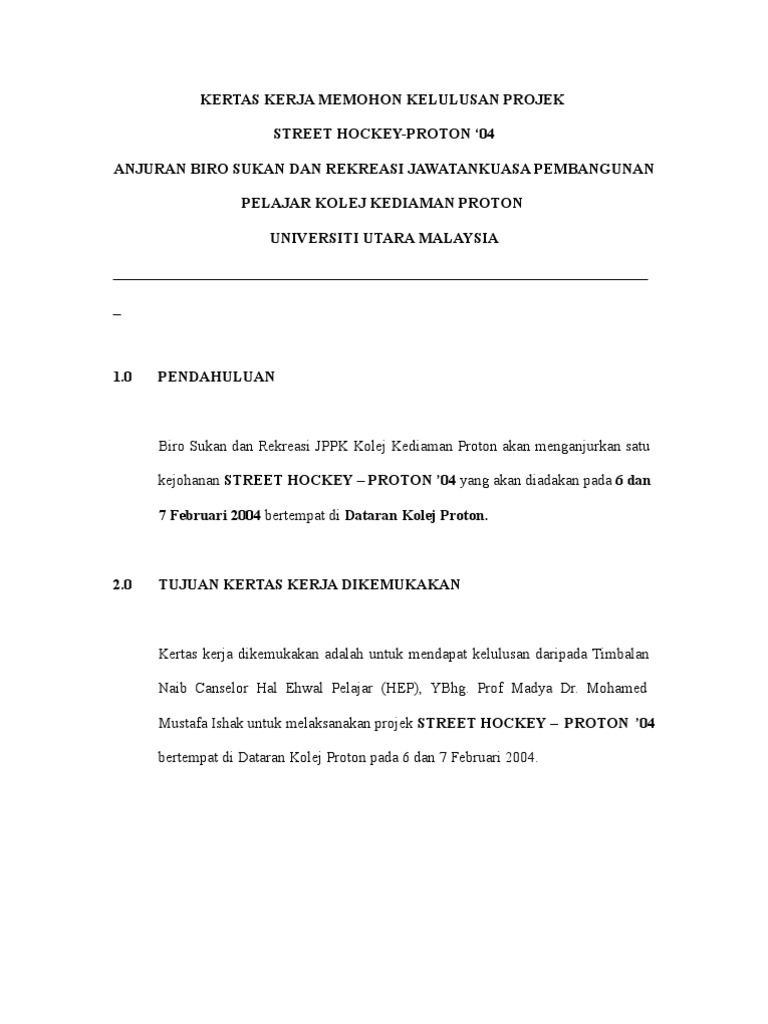 Kertas Kerja Memohon Kelulusan Projek