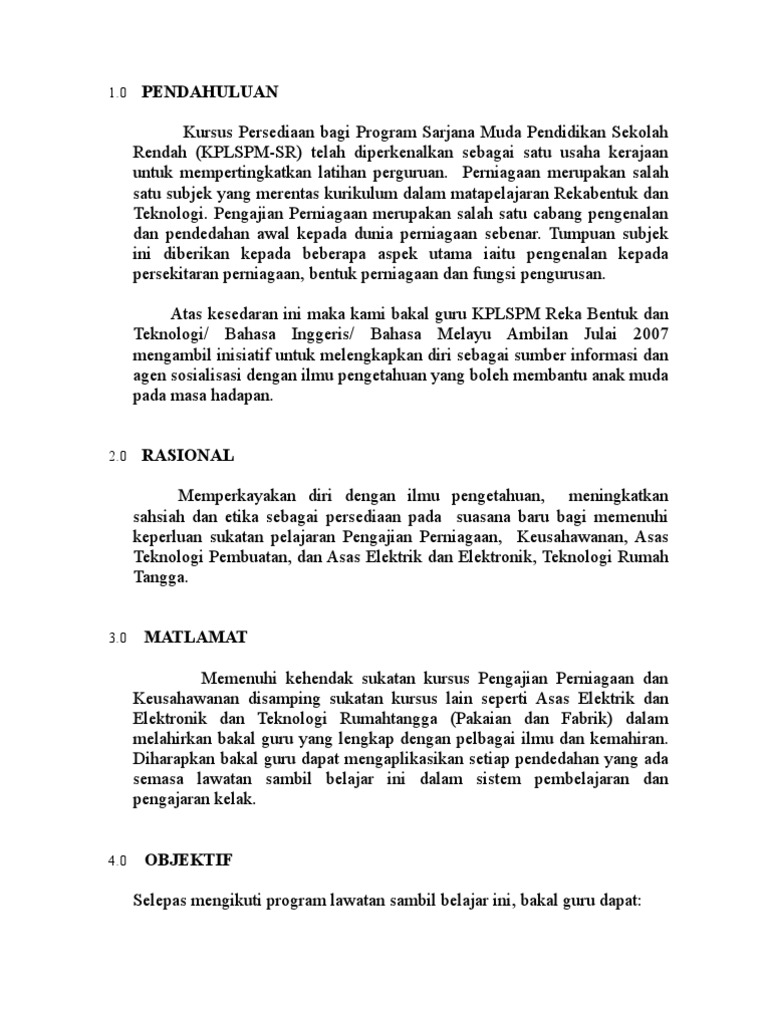 Doc Contoh Kertas Kerja Lawatan Mohd Hamdi Salleh Academia Edu