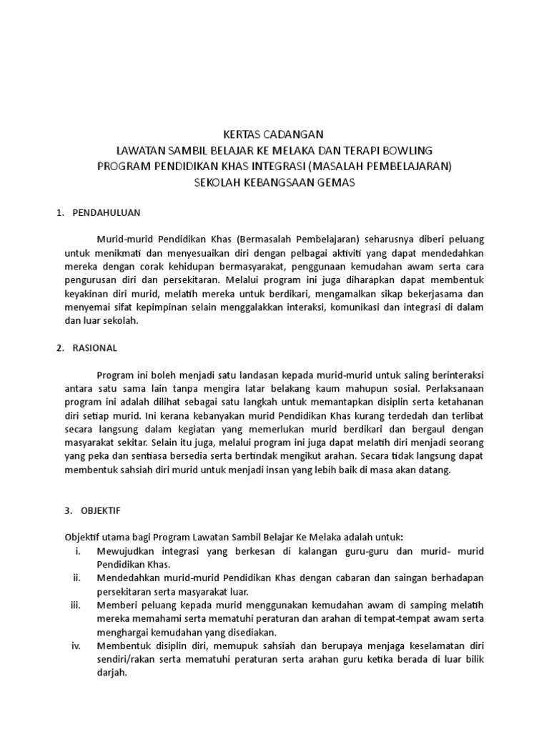 Doc Kertas Kerja Cadangan Program Lawatan Sambil Belajar Ke Shah Alam Dan Melaka Wan Aina Syahiida Wan Abdullah Academia Edu