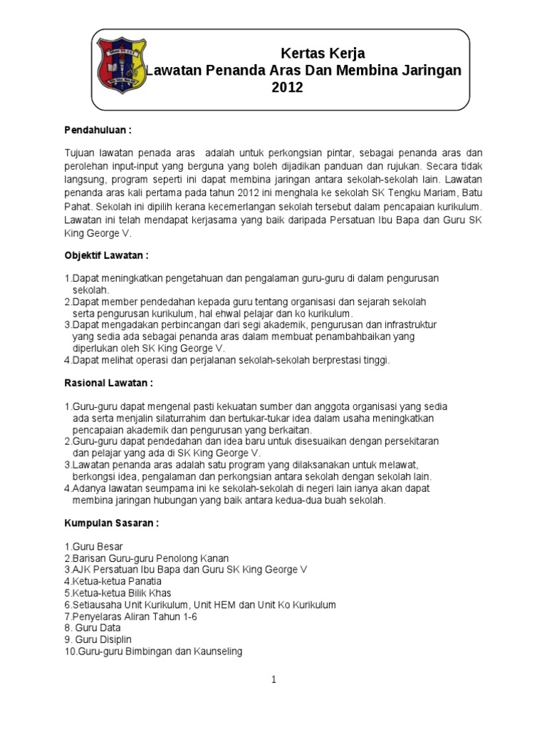 Kertas Kerja Lawatan Penanda Aras Doc