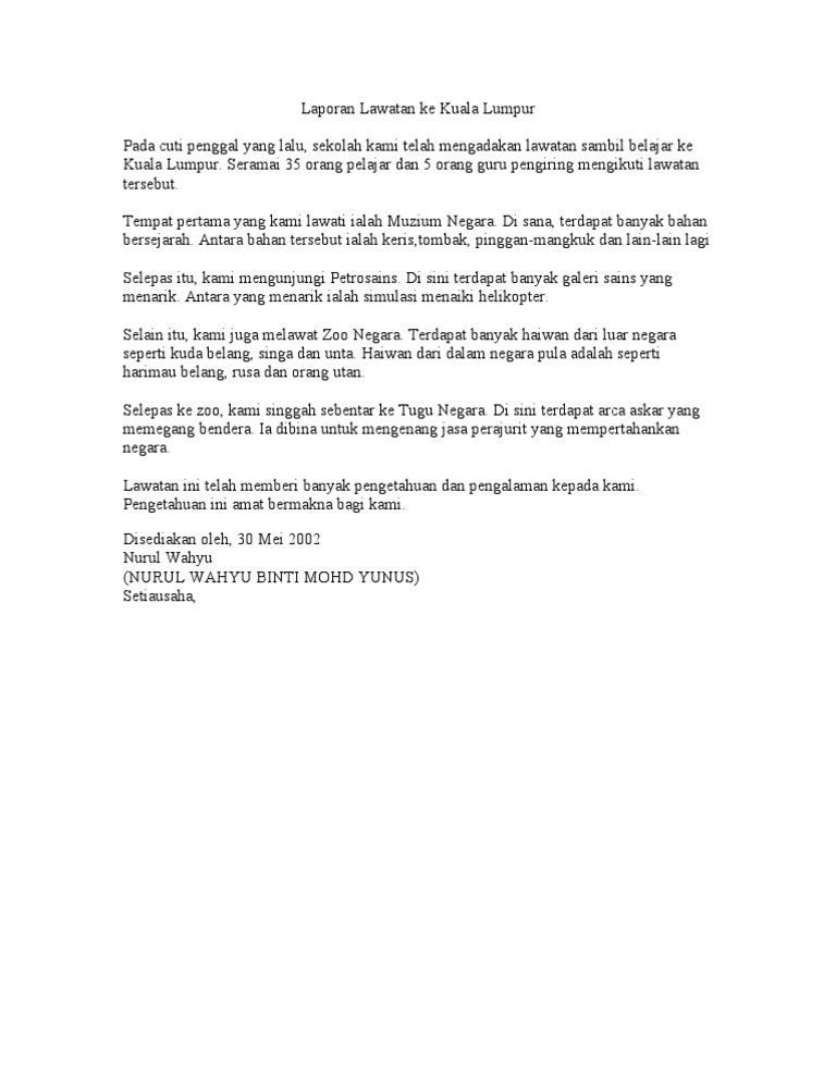 Kertas Kerja Lawatan Ke Kuala Lumpur