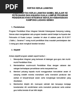 Contoh Kertas Kerja Lawatan