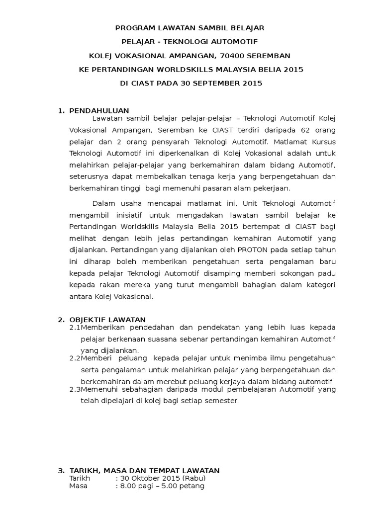 Kertas Kerja Lawatan Sambil Belajar Ke Pwtc Doc Doc Document