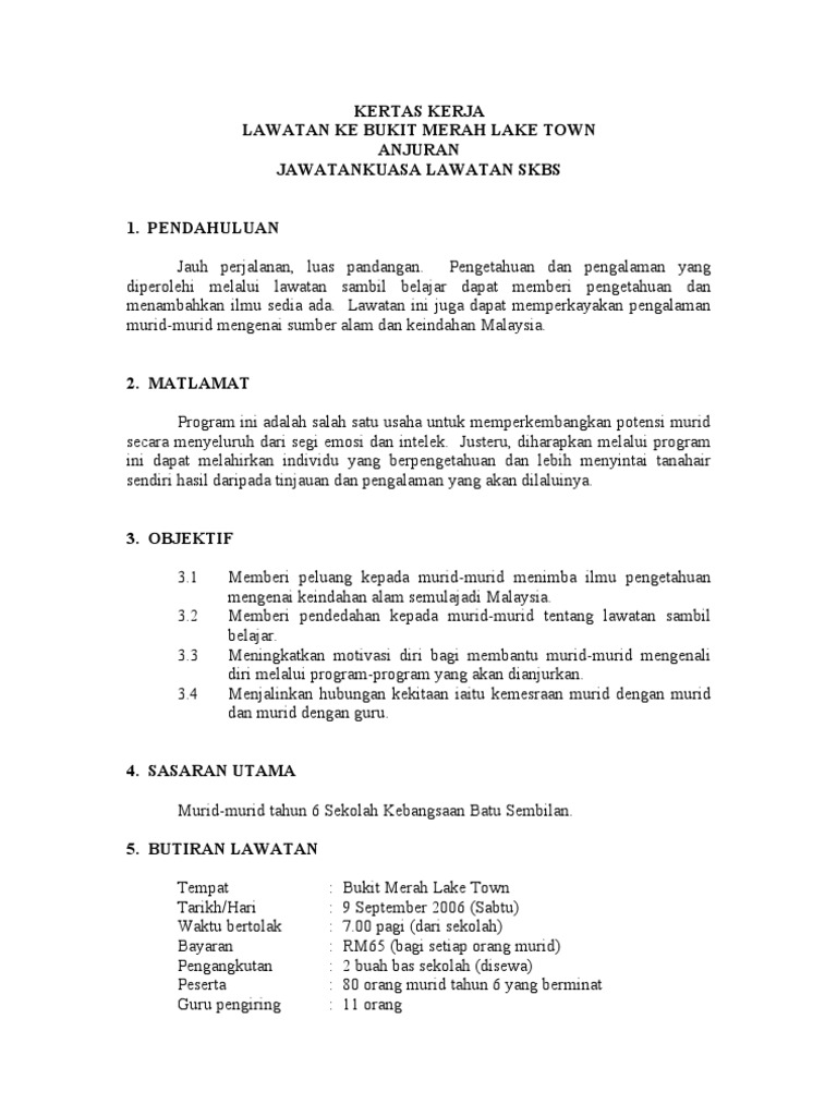 Kertas Kerja Lawatan Ke Langkawi Doc Document