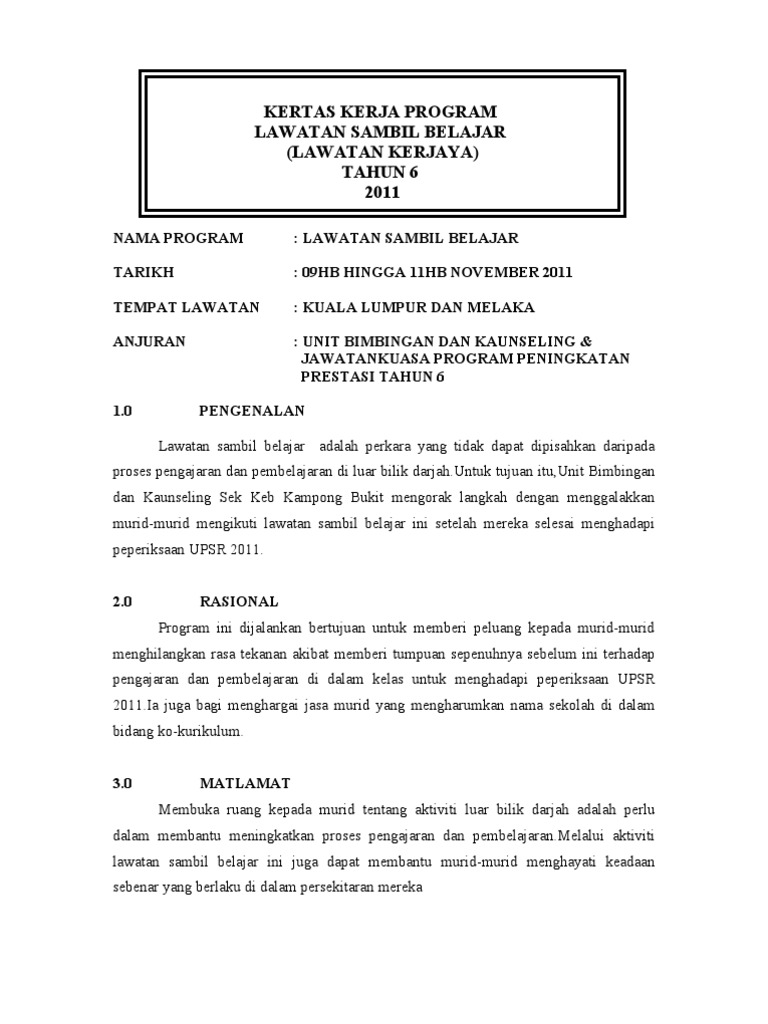 Doc Kertas Kerja Program Lawatan Sambil Belajar Ke Cameron Highland Guru Besar Sk Kg Kuantan Academia Edu