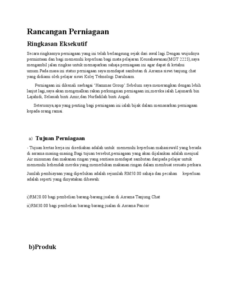 Doc Contoh Kertas Kerja Rancangan Perniagaan Shahrin Hamid Academia Edu
