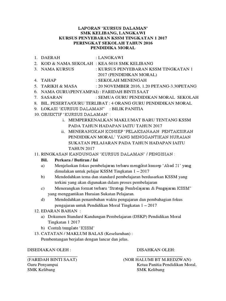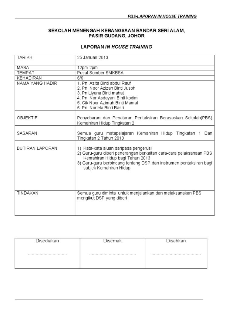 Doc Laporan In House Training Kursus Peringkat Sekolah Tahun Siti Hafisah Zakaria Academia Edu