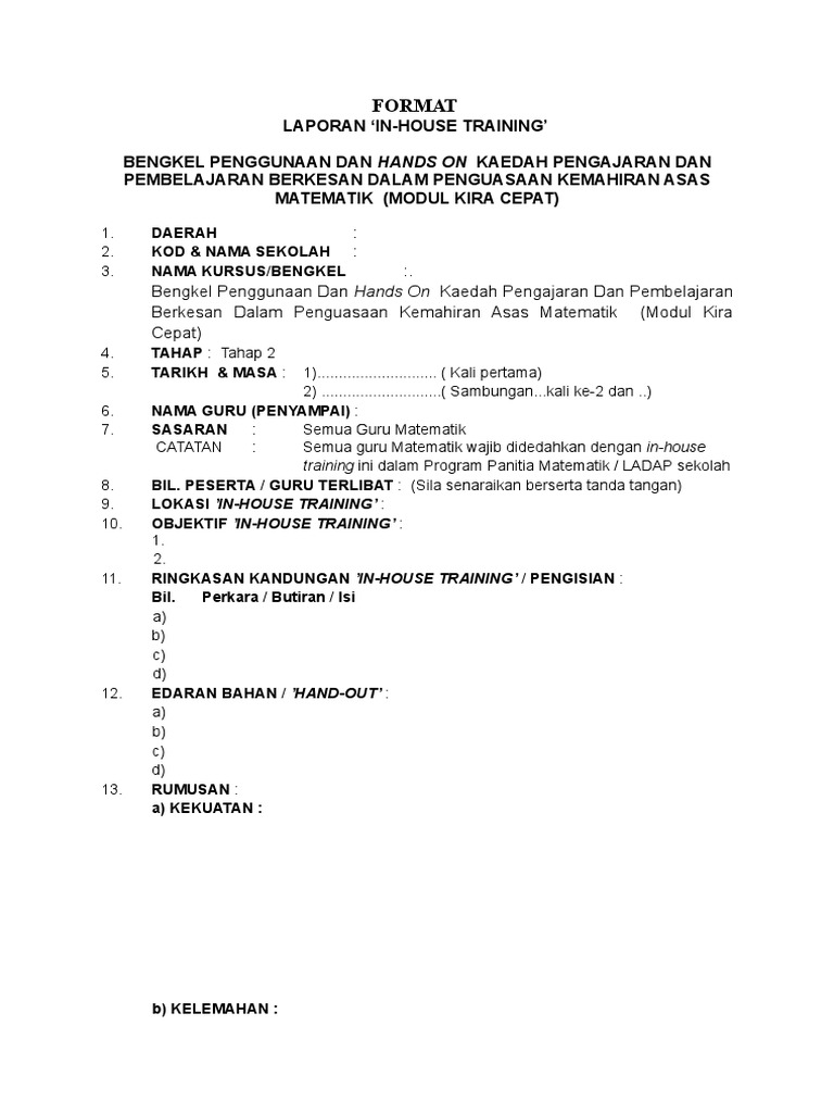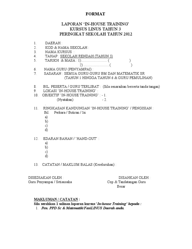 Format Laporan In House Training
