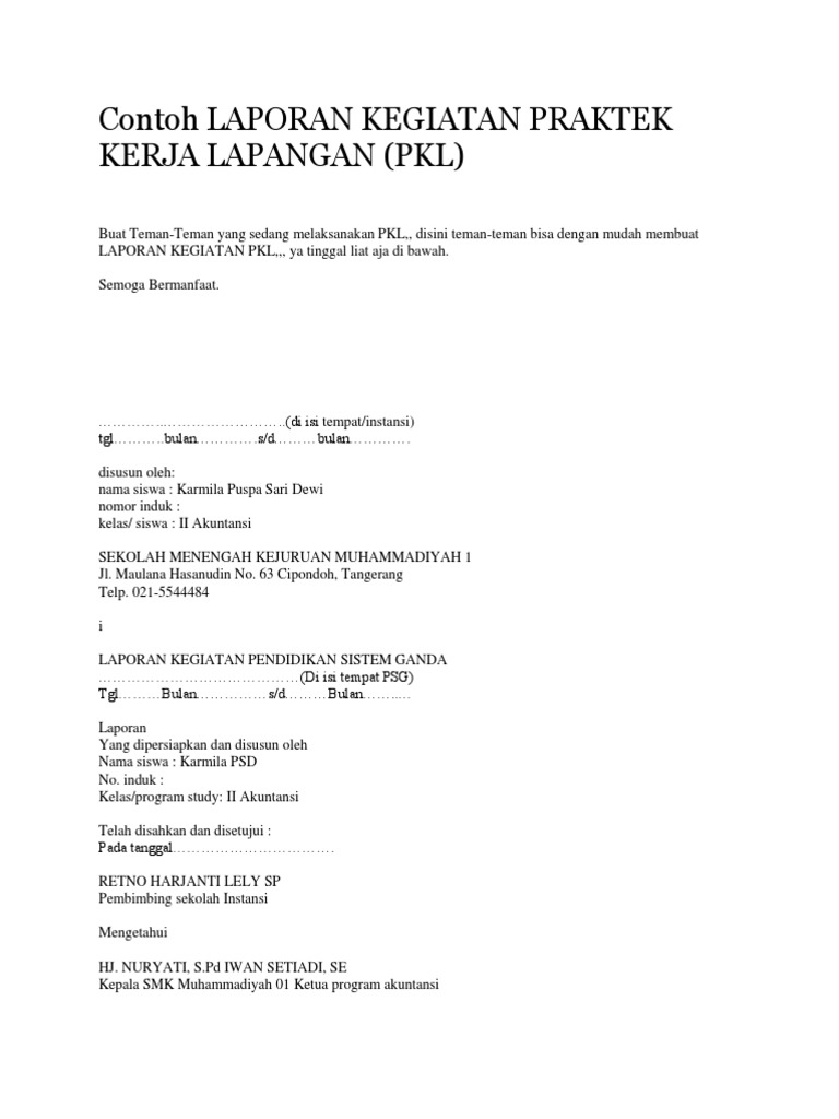 2 Contoh Laporan Pkl Atau Prakerin Yang Benar Sesuai Eyd File Pdf Bukubiruku