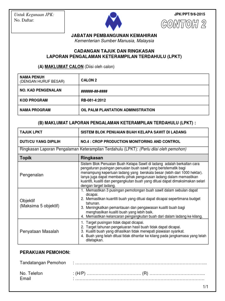 Jabatan Pembangunan Kemahiran Cadangan Tajuk Dan Ringkasan Laporan Pengalaman Keterampilan Terdahulu Lpkt