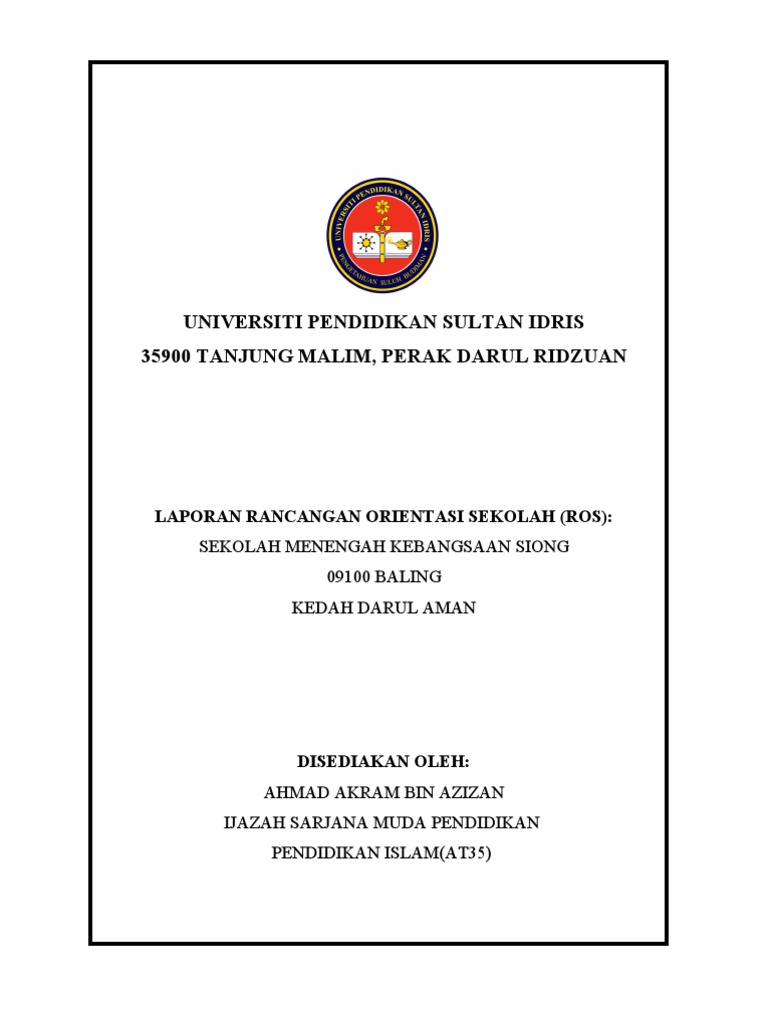 Contoh Report Rancangan Orientasi Sekolah Ros