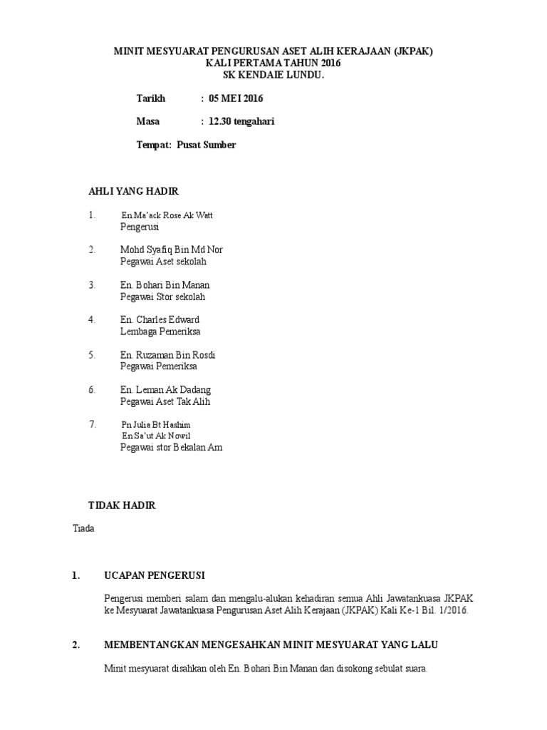 Minit Mesyuarat Aset Sekolah Kali Ke 1 Bil 1 2018 Doc Minit Mesyuarat Pengurusan Aset Alih Kerajaan Jkpak Kali Pertama Tahun 2018 Sjk T Ldg Sg Palas Course Hero