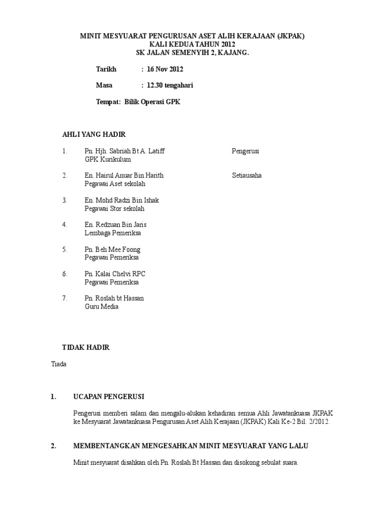 174015875 Minit Mesyuarat Aset Sekolah Kali Ke 2 Bil 2 2012 Doc