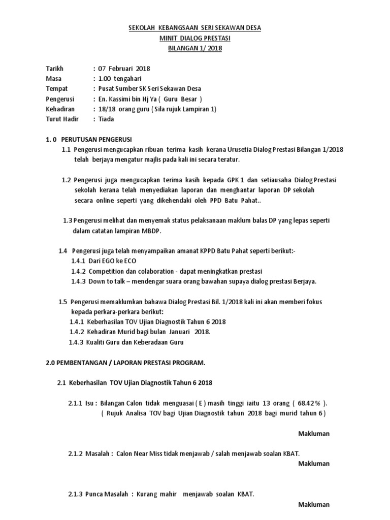 Contoh Minit Mesyuarat Dialog Prestasi Kurikulum Pk 07