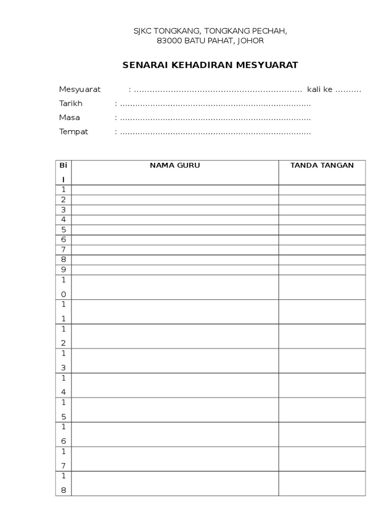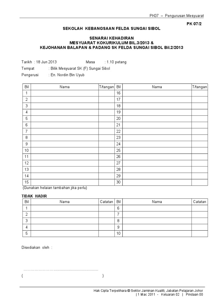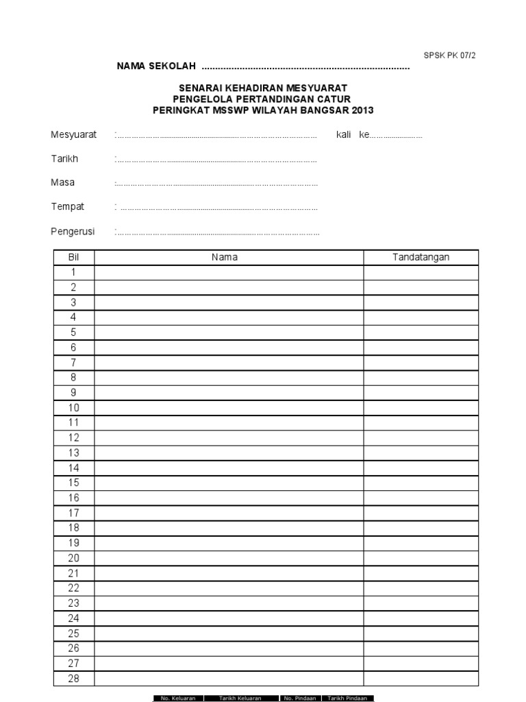 Borang Pk 07 2 Senarai Kehadiran Mesyuarat Doc Google Drive