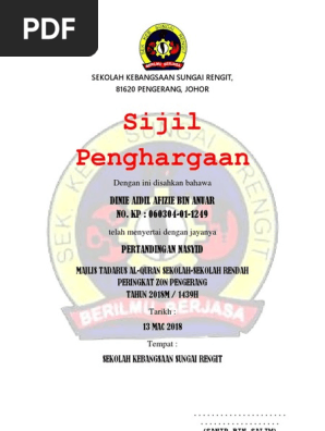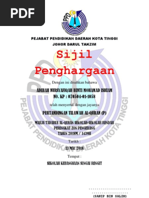 Contoh Sijil Penghargaan Mtq Pemenang