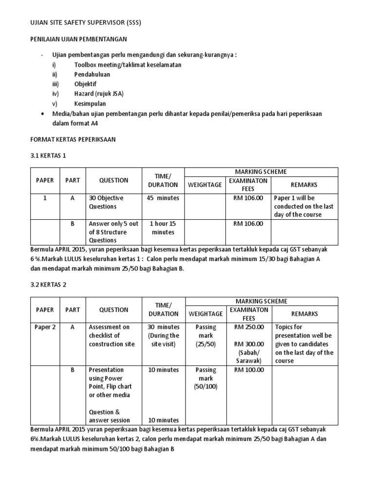Format Ujian Site Safety Supervisor