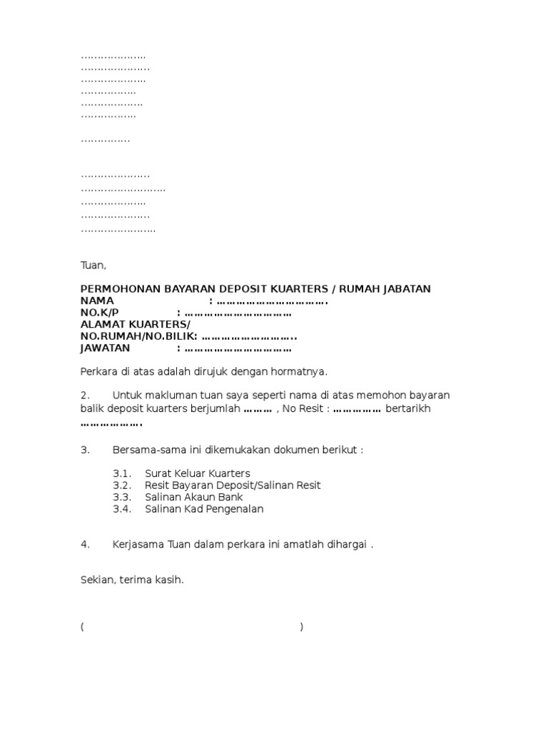 Contoh Surat Bayaran Balik Deposit