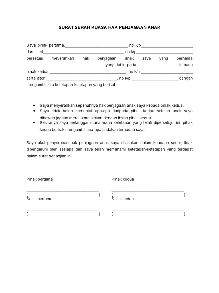 Contoh Surat Akuan Hak Penjagaan Anak Download Kumpulan Gambar