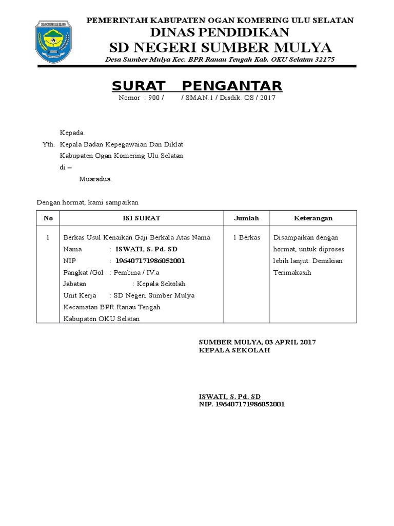 Surat Pengantar Kenaikan Pangkat Dari Kepala Sekolah Contoh Seputar Surat