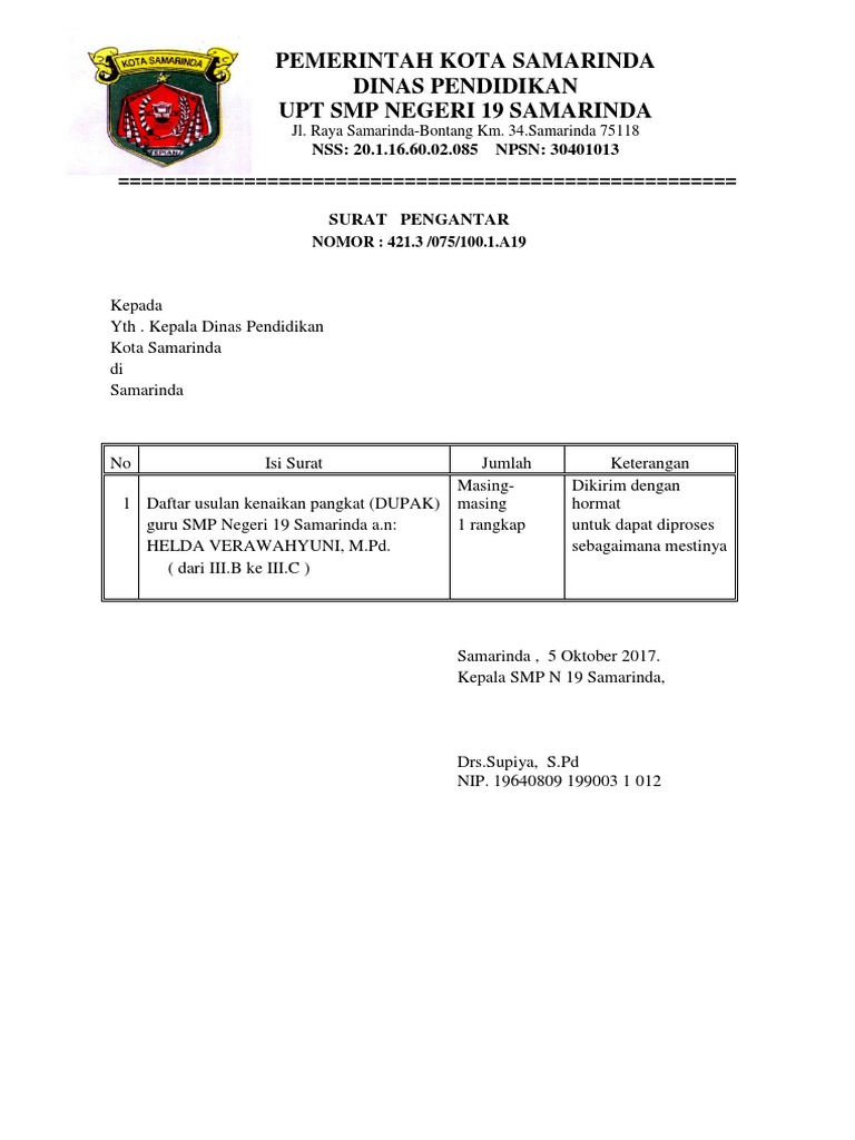 Contoh Surat Pengantar Kenaikan Pangkat Dari Kepala Sekolah Doc Bagi Contoh Surat