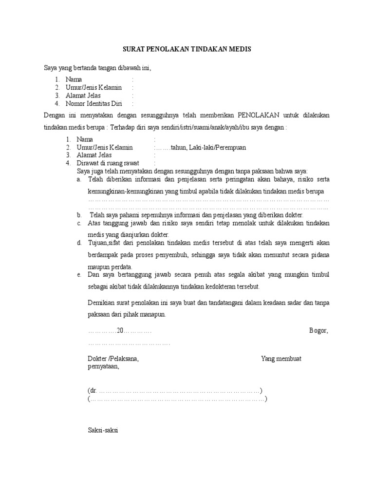 Surat Penolakan Tindakan Medis