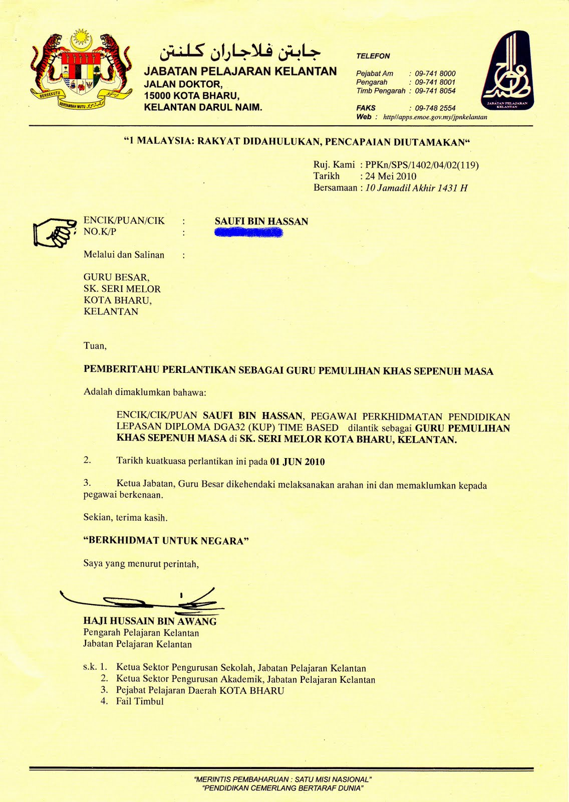 Surat ini menawarakan jawatan kepada pegawai perkhidmatan pendidikan ppp gred dg 34 kup gred dg41 42 dan gred dg44. Contoh surat rasmi letak jawatan atau contoh surat berhenti kerja merupakan kemasini terkini tips menulis surat letak jawatan dengan mudah. Proses meletakkan jawatan merupakan peringkat dimana anda harus titik beratkan jika anda mahu gaji terakhir dimasukkan ke dalam akaun bank anda.