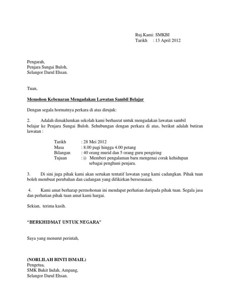 Contoh Surat Rasmi Permohonan Lawatan Kerja Resepi Book P