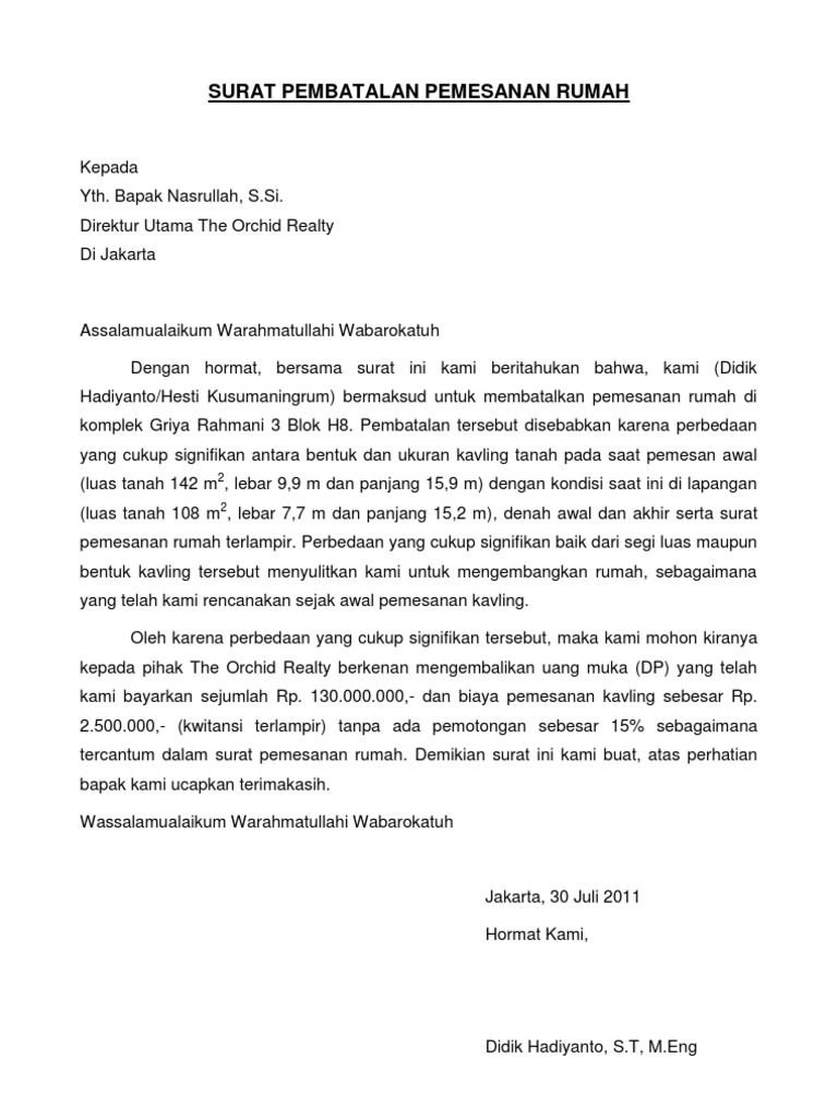D4t4 Kul14h Surat Pembatalan Pembelian Rumah