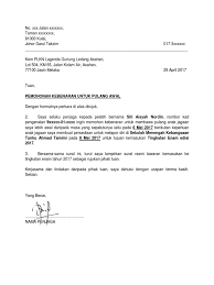 Surat Rasmi Memohon Kebenaran Pulang Ke Kampung