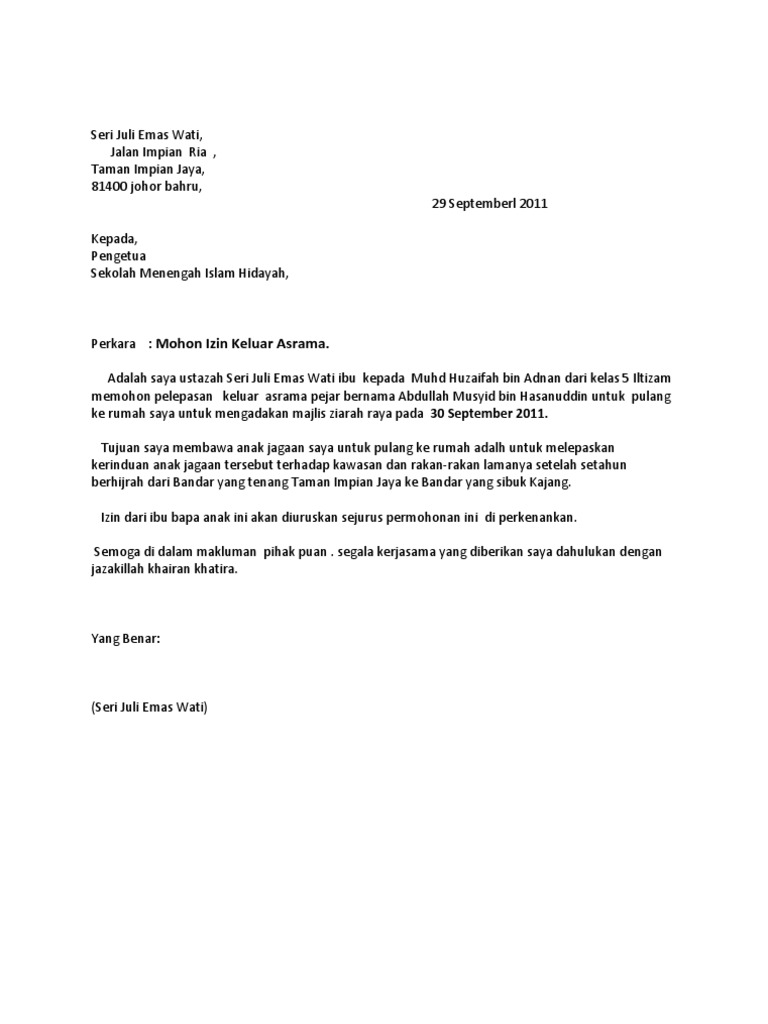 Contoh Surat Rasmi Permohonan Keluar Asrama Rasmi Ro Cute766