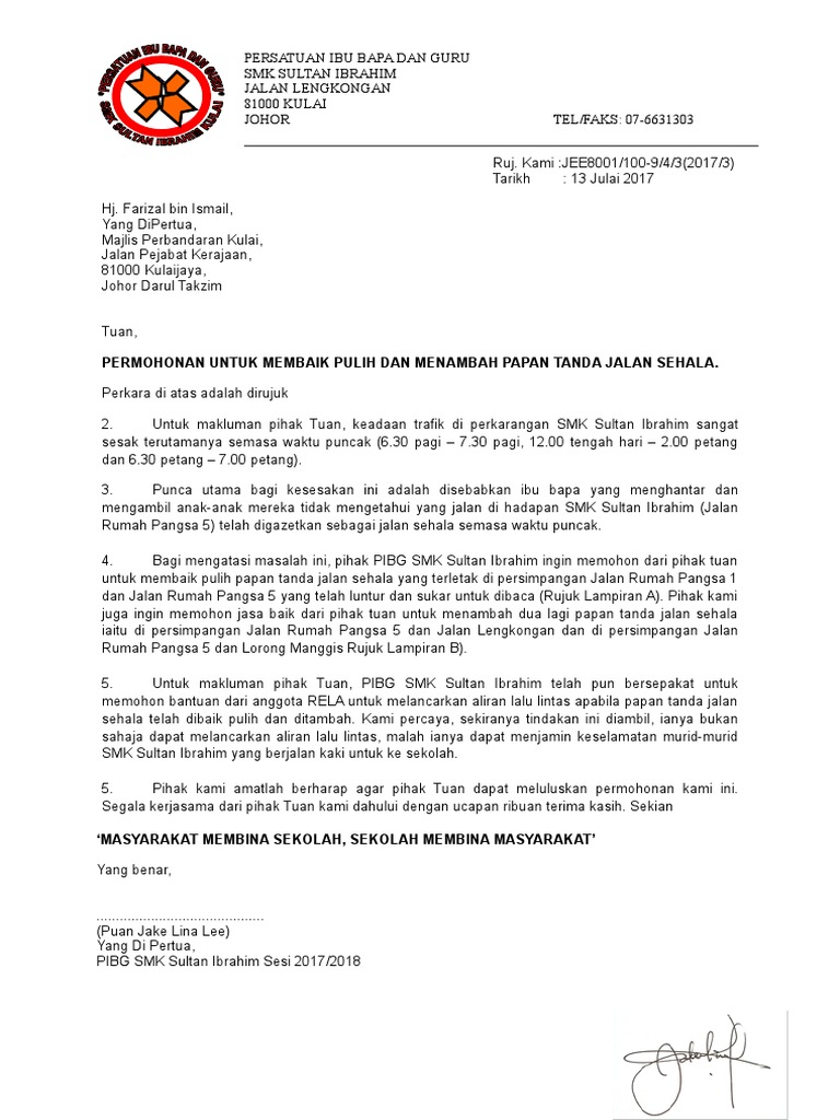 Contoh Surat Rasmi Permohonan Papan Tanda Rasmi Sua