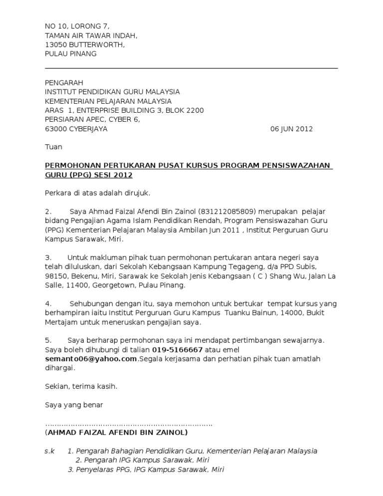 D Ent Contoh Surat Permohonan Pertukaran Program Pengajian