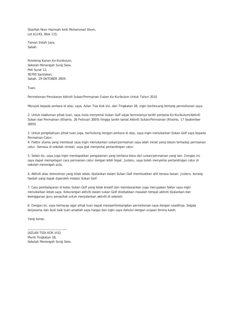 Contoh Surat Pertukaran Kelas Tingkatan 4 Contoh Resume