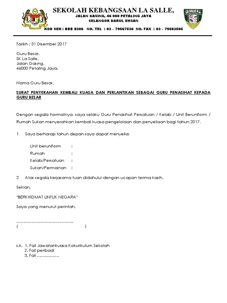 Contoh Surat Rasmi Wakil Kuasa J Kosong V